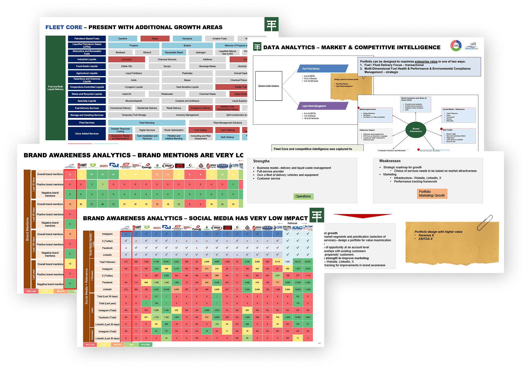 We utilized our data science partner, Espalier.ai, to provide analytics focused on brand awareness, brand identity, digital platform performance, competitive positioning and service offerings, and the future focus for Fleet Core as a direct fuel delivery service provider focused on fuel health & performance.