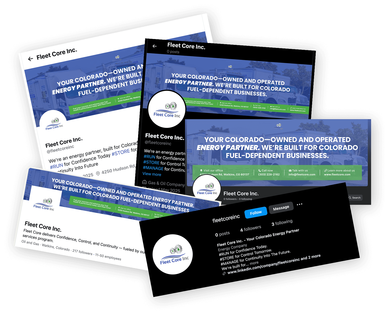 Fleet Core lacked the strategic demand generation benefits that can be captured through effective and targeted Social Media. We developed and manage 5 key Social Media platforms for them today, focused on human interest, Fleet Core value differentiation, customer value examples, fuel-dependent business operational needs and Fleet Core solutions, and overall brand messaging.